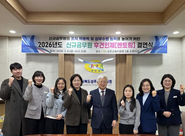 [메이저뉴스] 경상북도성주교육지원청은 6일 소회의실에서 2026. 1. 1.자 신규 공무원 1명, 멘토 공무원 2명이 참석하여 신규 공무원의 조직 적응력을 높이고 자신감 있는 공직 생활을 유도하고자 후견인제(멘토링) 결연식과 직무연수를 가졌다.