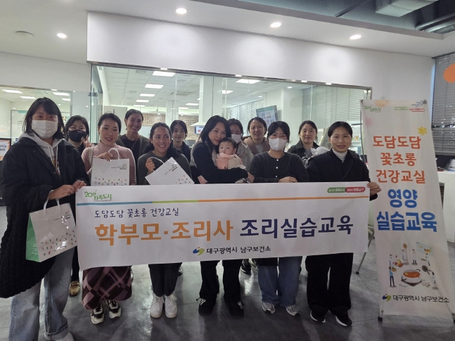 [메이저뉴스]대구 남구보건소는 지난 24일 유아 건강관리 프로그램 ‘도담도담 꽃초롱 건강가꾸기’사업의 일환으로 관내 유치원 및 어린이집의 학부모 등을 대상으로 조리실습 및 식생활 인식 개선 교육을 진행했다.