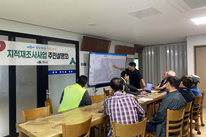 [메이저뉴스]장수군은 지난달 17일부터 25일까지 각 사업지구 마을회관에서 토지소유자와 이해관계인 100여 명을 대상으로 2024년 지적재조사사업 주민설명회를 열고 확정된 경계를 안내하며 의견을 접수했다고 2일 밝혔다.