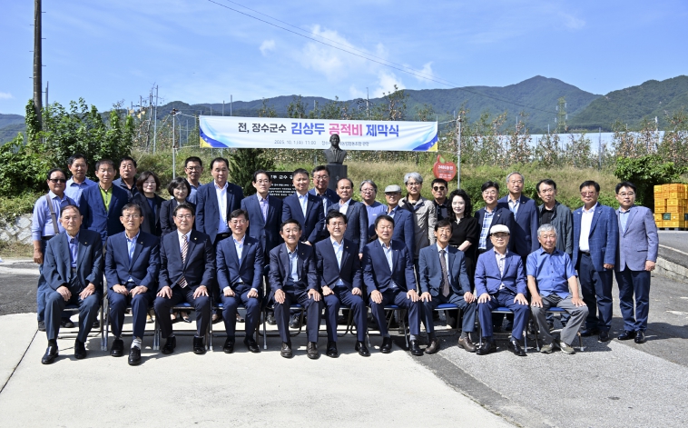 [메이저뉴스]장수군은 지난 1일 장수사과원예협동조합 광장에서 김상두 전 장수군수의 공적비 제막식을 거행했다고 밝혔다.