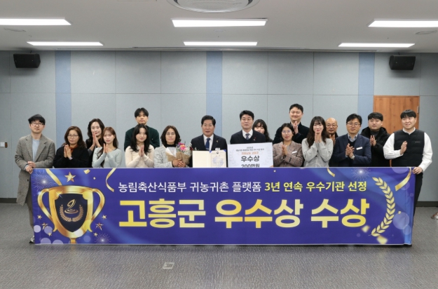 고흥군은 이번 수상을 통해 농림축산식품부 귀농귀촌 평가에서 3년 연속 우수 지자체로 선정됐으며, 대한민국 브랜드 명예의 전당 귀농귀촌 분야 7년 연속 수상, 전라남도 귀농귀촌 종합평가 2년 연속 최우수상 수상 등의 성과를 거두며 명실상부한 대한민국 귀농귀촌 1번지임을 대외적으로 입증했다.