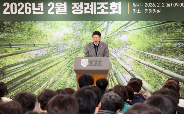 [메이저뉴스]담양군은 2일 군청 면앙정실에서 공직자 180여 명이 참석한 가운데 2월 정례조회를 열고 군정 현안을 점검했다.