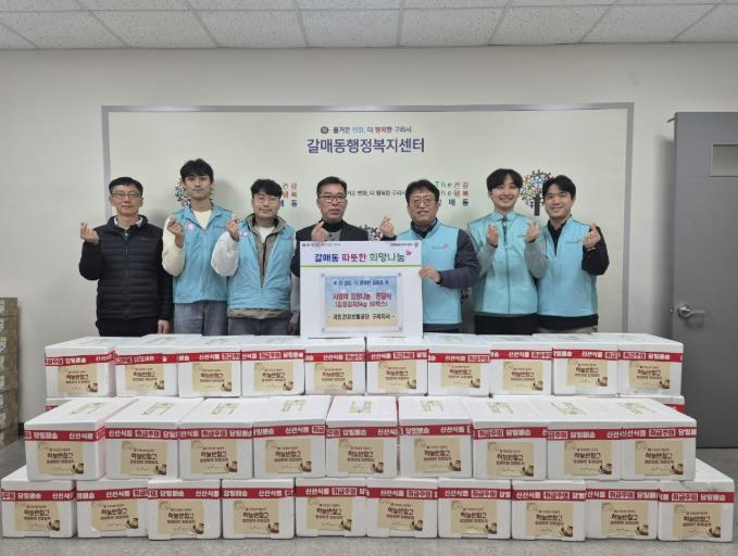[메이저뉴스]구리시 갈매동은 지난 11일 행정복지센터에서 ‘사랑의 김장나눔 전달식’을 개최하고, 국민건강보험공단 구리지사가 김장 김치 5kg 50박스를 기탁받아 지역 내 의료취약계층 50가구에 전달하며 지역사회 의료․요양 통합돌봄 안전망 강화에 본격적으로 나섰다.