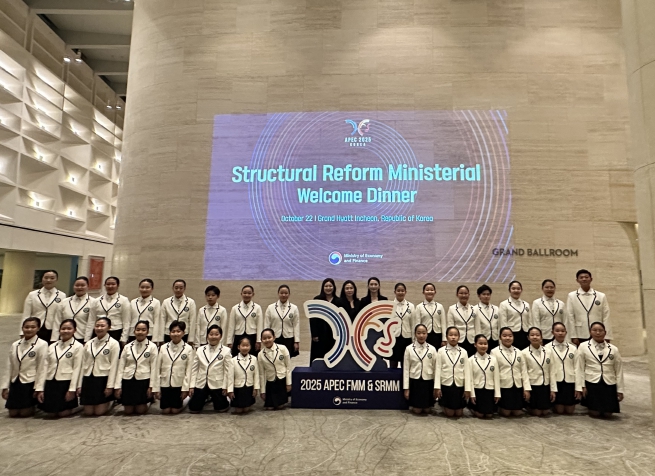 [메이저뉴스]인천 계양구립소년소녀합창단이 10월 22일 영종도 그랜드하얏트인천에서 열린 ‘APEC 구조개혁장관회의’ 환영 만찬 무대에 올라 아름다운 하모니를 선보였다.
