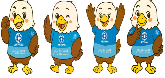 ‘또미’는 안양시 시조(市鳥)인 독수리를 친근하게 의인화한 캐릭터로 유니세프의 아동친화 철학을 담은 파란색 티셔츠를 입고 있는 ‘밝고 정의로운 어린 독수리 친구’이다.
