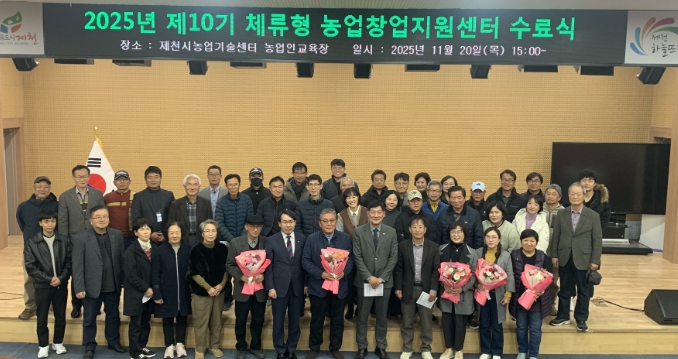 [메이저뉴스]제천시 농업기술센터는 지난 20일 제천시 농업기술센터 농업인 교육장에서 2025년 제10기 체류형 농업창업지원센터 수료식을 개최했다.