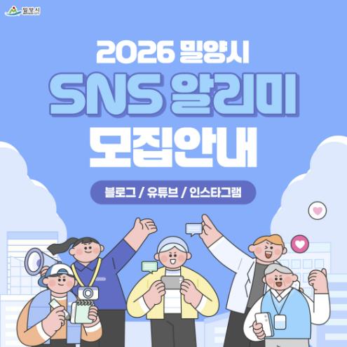 [메이저뉴스]경남 밀양시는 오는 12일 1일까지 시의 정책, 문화·관광, 축제·행사, 맛집 등 다양한 분야를 취재하고 홍보할 ‘2026년 사회관계망서비스(SNS) 알리미’를 모집한다고 24일 밝혔다.