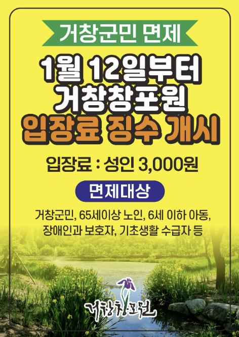 | ▲ 거창창포원 1월 12일부터 입장료 신설, 거창군민은 무료 |