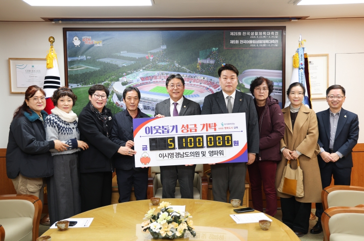 [메이저뉴스] 김해시는 이시영 경남도의원과 김해 내외동 소재 봉사단체 영파워가 24일 저소득층 장애아동을 위한 장학금 510만원을 기탁했다고 밝혔다.