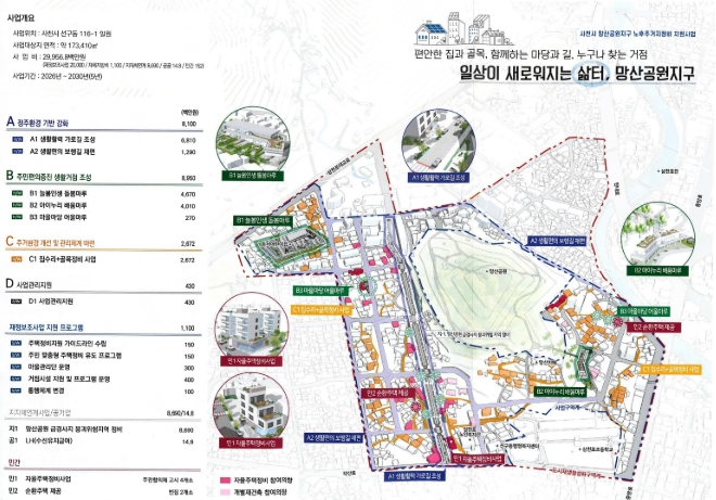 이번 사업을 통해 망산공원지구에는 정주환경 기반 강화, 주민현의증진 생활거점 조성, 주거환경 개선 및 관리체계 마련, 사업관리 지원 등 4가지 주요사업이 실시될 예정이다.