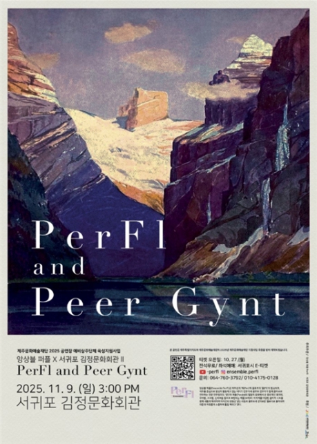 [메이저뉴스]서귀포시는 2025년 공연장 상주단체 육성지원사업의 일환으로, 11월 9일 오후 3시 김정문화회관 공연장에서 앙상블 퍼플의 플루트·타악기 앙상블 공연 '페르귄트'를 개최한다.