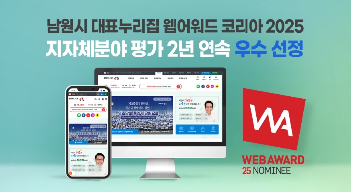 [메이저뉴스]남원시 대표 누리집이 사단법인 한국인터넷전문가협회가 주최하는 ‘웹어워드 코리아 2025’에서 2년 연속 지자체 분야 우수에 선정됐다.