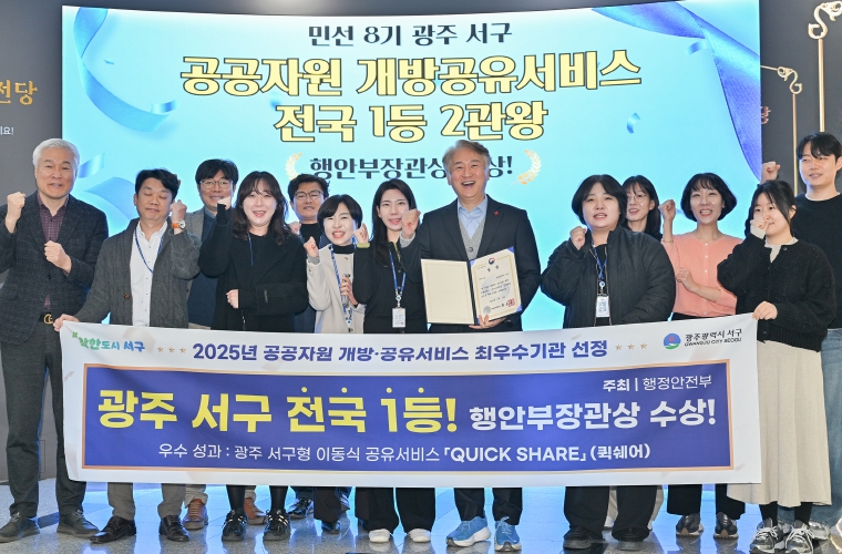 [메이저뉴스]광주광역시 서구의 생활밀착형 공유정책 ‘천원 피크닉’이 전국 무대에서 주목받았다. 서구는 행정안전부가 주관한 ‘2025년 공공자원 개방·공유서비스 실적평가’에서 전국 최우수 기관으로 선정돼 행정안전부 장관상을 수상했다고 29일 밝혔다.