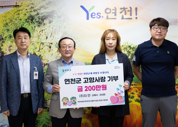 이날 기탁식에는 ㈜지안 김예서 대표와 허성환 이사가 참석해 각각 100만원씩, 총 200만원의 기부금을 전달했다. ㈜지안은 연천군 전곡읍 소재에 전기·통신 공사, LED전광판, 방송장비 등을 전문으로 하는 업체로 지역사회 발전에 기여하고 있다.