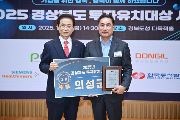 [메이저뉴스]의성군은 지난 19일 경북도청에서 열린 ‘2025년 경상북도 투자유치대상’ 시상식에서 투자유치 활성화 성과를 인정받아 3년 연속 대상을 수상했다고 밝혔다.