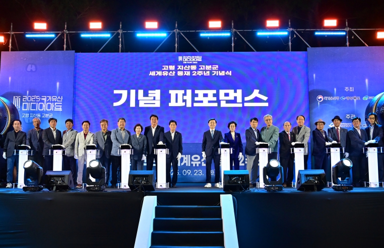 이날 행사는 2년 전인 2023년 9월 23일 제45차 세계유산위원회에서 우리나라 16번째 세계유산으로 등재된 고령 지산동 고분군(가야고분군)의 등재의미를 다시금 되새기고, 이를 기념하여 개최되는 2025 국가유산 미디어아트를 비롯한 대북퍼포먼스, 드론라이트쇼 등 다양한 행사들이 운영됐다.