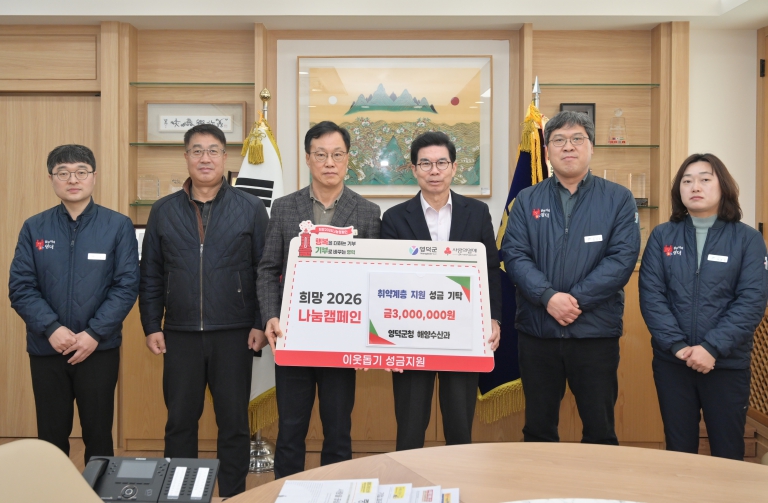정제훈 해양수산과장은 “수산행정 평가 우수 지자체 선정은 군 행정력의 성과를 넘어 어려운 여건 속에서도 현장을 지켜온 어업인과 수산기업 관계자, 그리고 묵묵히 함께해 온 직원 모두의 노력으로 이뤄낸 결과”라며, “그 소중한 성과를 군민과 함께 나누고자 희망2026 나눔 캠페인에 동참하게 됐다”라고 밝혔다.