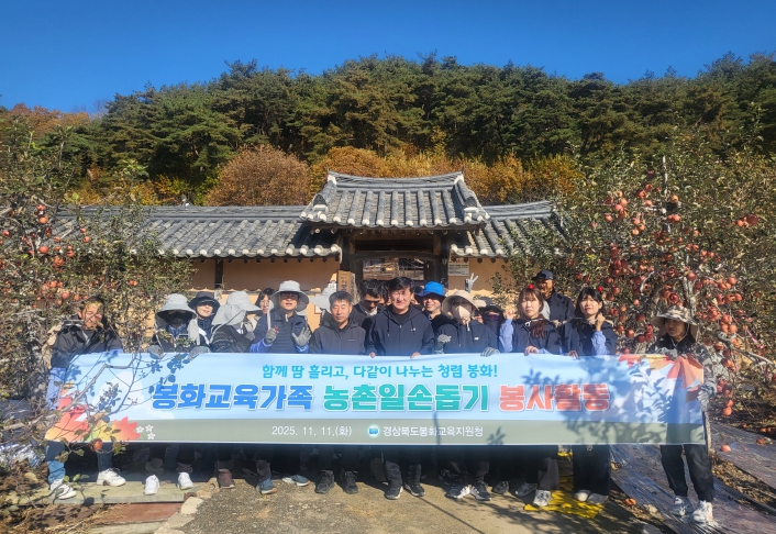 [메이저뉴스]봉화교육지원청은 11월 11일 조선시대 청백리의 상징인 계서당에서 청렴정신을 되새기며 지역 농가의 사과 수확을 돕는 농촌 일손돕기 봉사활동을 실시했다.
