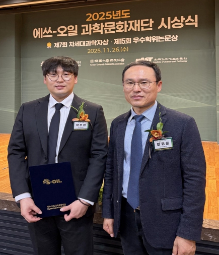 한편, ‘에쓰-오일 우수학위논문상’은 2011년부터 매년 수여되고 있으며, 수상자에게는 연구지원금이 수여된다. 에쓰-오일 과학문화재단은 11월 26일 서울 마포구 공덕동 본사에서 ‘제15회 에쓰-오일 우수학위 논문상’ 시상식을 개최했다.