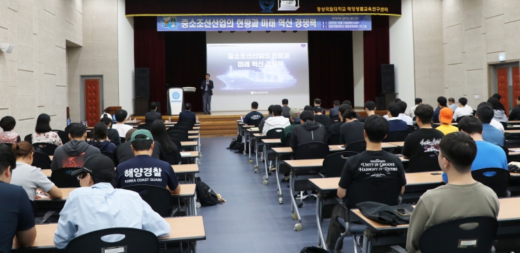 [메이저뉴스]경상국립대학교 해양과학대학은 10월 14일 해양과학대학 해양생물교육센터 1917홀에서 중소조선연구원 서용석 원장을 초청하여 ‘중소조선산업의 현황과 미래 혁신 경쟁력’이라는 주제로 ‘제3회 GNU 마린 드림 토크’를 개최했다.