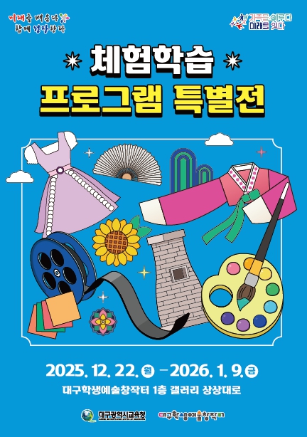 [메이저뉴스]대구시교육청 산하 대구학생예술창작터는 12월 22일부터 1월 9일까지 창작터 1층 갤러리 ‘상상대로’에서 '2025 체험학습 프로그램 특별전'을 개최한다.