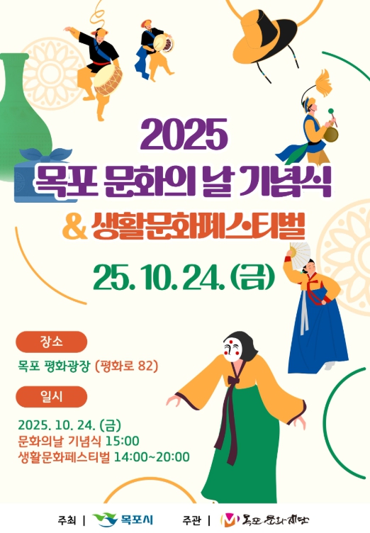[메이저뉴스]목포문화재단은 오는 10월 24일 오후 2시 평화광장에서 ‘2025 목포 문화의 날 기념식 및 생활문화페스티벌’을 개최한다.