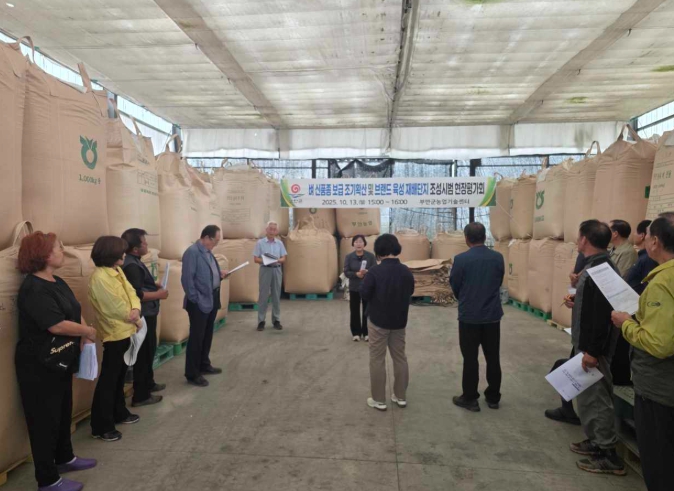 [메이저뉴스]지난 10월 13일 부안군농업기술센터에서는 주관한 벼 신품종 조기확산 및 브랜드 육성 재배단지 조성 시범사업 현장평가회가 부안군 계화면 궁안리 뜰에서 성황리 열렸다.