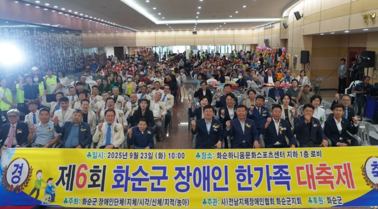 [메이저뉴스] 전남 화순군은 9월 23일 (사)전남지체장애인협회 화순군지회(지회장 천기선) 주관으로 하니움문화스포츠센터에서 장애인과 비장애인이 함께하는 제6회 ‘화순군 장애인 한 가족 대축제’를 성황리에 개최했다고 밝혔다.