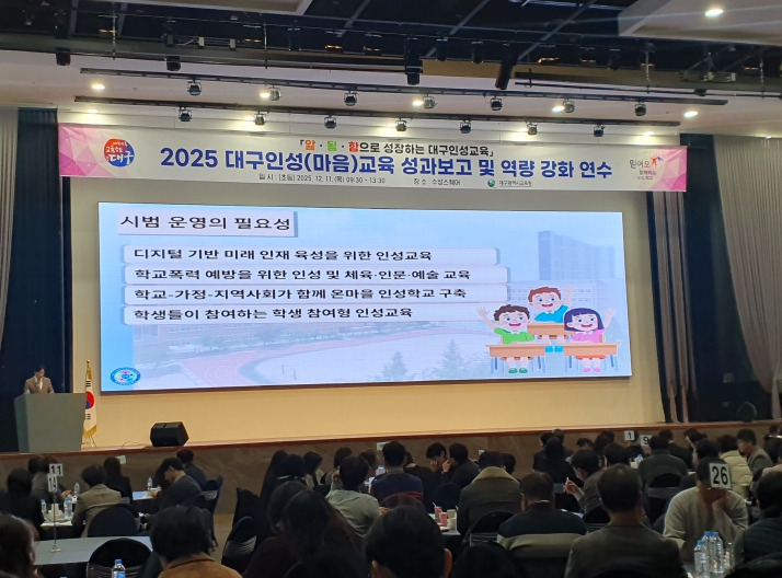 강은희 교육감은 “이번 인성‧마음교육 성과보고 및 역량 강화 연수가 학교 현장에서의 실천 사례를 공유하고, 학교 관리자들의 인성교육 이해를 높이는 계기가 되기를 바란다”며 “2026년에도 학생들이 서로 존중하며 더불어 살아갈 수 있도록 인성·마음교육을 지속적으로 지원하겠다”고 말했다.