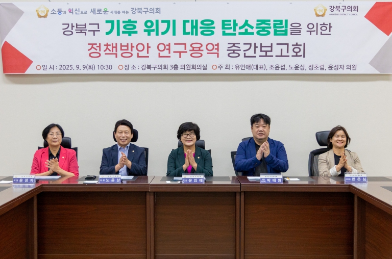 [메이저뉴스]강북구의회 의원연구단체인 ‘강북구 기후위기 대응 탄소중립을 위한 연구회’ (대표의원 유인애)는 지난 9월 9일 의회 3층 의원회의실에서 중간보고회를 열었다.