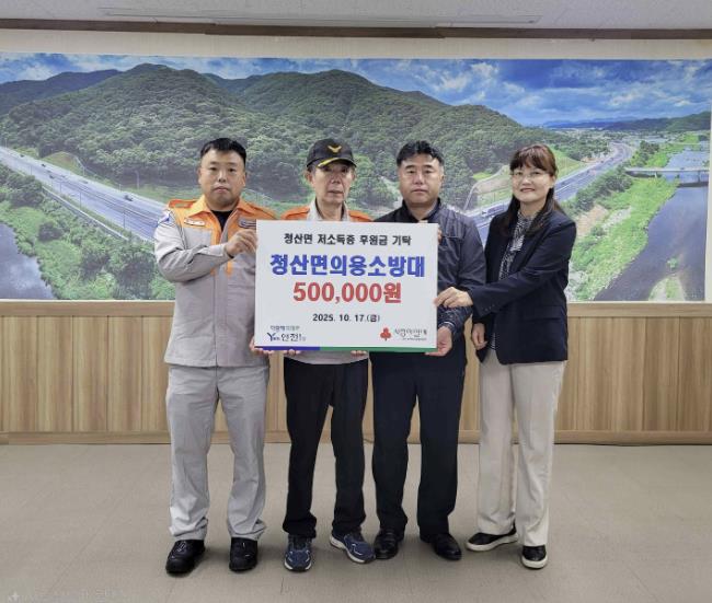 [메이저뉴스]청산면의용소방대은 지난 17일 청산면행정복지센터를 방문해 지역사회 저소득층에게 따뜻한 온기를 나누고자 현금 50만 원을 기탁했다.
