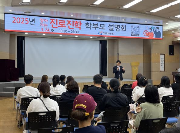 [메이저뉴스]인천 서구는 지난 24일 서구청 지하대회의실에서 학부모 및 학생들이 참여한 가운데 2025년 찾아가는 진로진학 학부모 설명회를 개최했다.