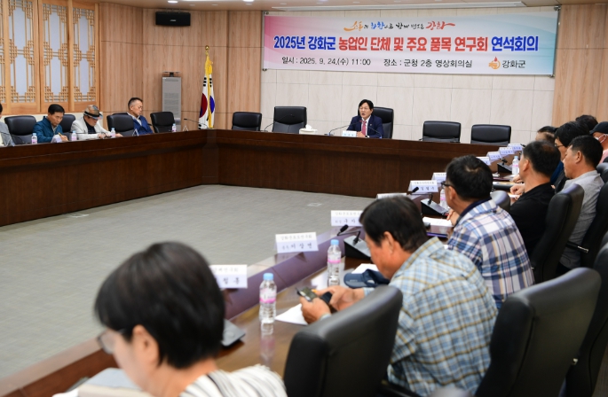 [메이저뉴스]강화군은 지난 24일 관내 농업인 단체장과 주요 품목 연구회 대표들과 함께 연석회의를 열고, 가을철 수확기를 맞은 농산물의 고품질 유지와 농업 발전 방안을 모색했다.