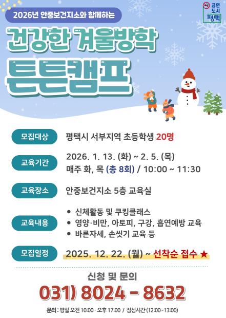 | ▲ 평택시 안중보건지소, 2026년 초등학생 대상 '건강한 겨울방학 튼튼캠프' 참여자 모집 |