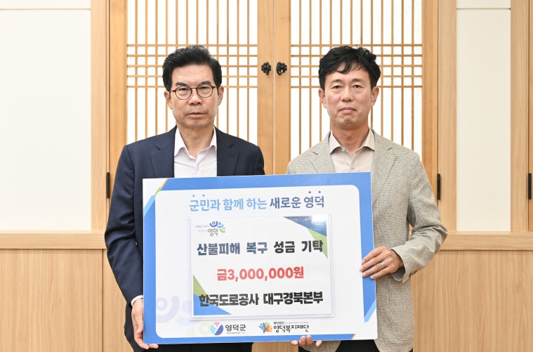 김광열 영덕군수는 “지역의 아픔에 함께해 주신 한국도로공사 대구경북본부에 진심으로 감사드린다”며, “기탁하신 성금이 주민들에게 실질적인 지원이 될 수 있도록 책임 있게 사용하겠다”라고 고마움을 표했다.