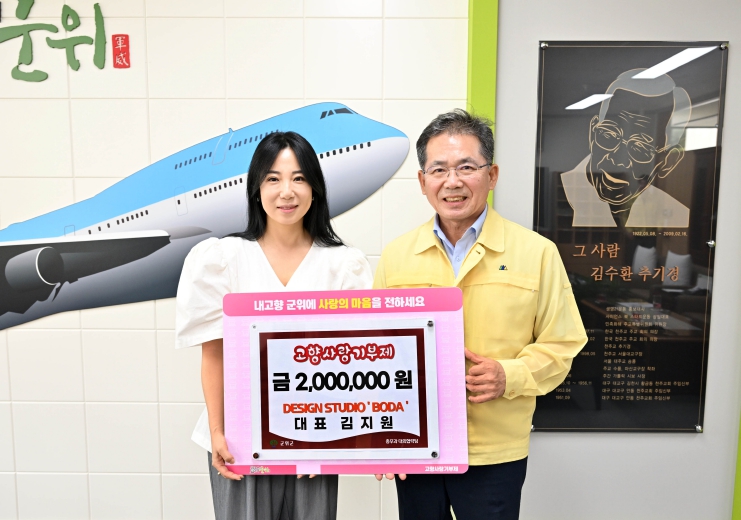 대구 수성구에 위치한 디자인 ‘보다'는 인쇄 및 판촉물을 전문으로 제작하는 기업으로 김지원 대표는 이날 “군위는 사업차 자주 방문하는 곳이라 애정이 간다.”라며 “기업인으로서 지역사회 환원에 앞장서고 싶다.”라고 기부 동기를 밝혔다.