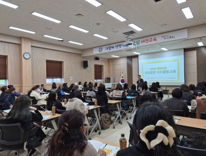[메이저뉴스] 충청남도서산교육지원청은 12월 10일 어울림실에서 서산 관내 54교 학부모회장과 학부모 70여 명이 참석한 가운데 학부모 교육 참여 사례 나눔 자리를 진행했다.