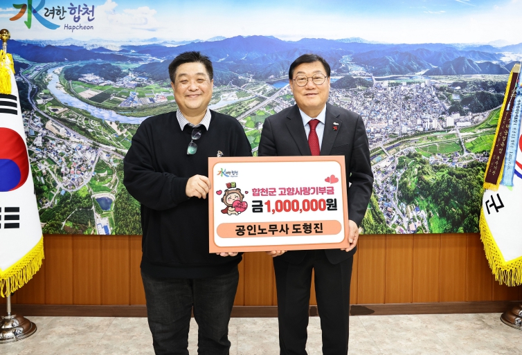 [메이저뉴스]합천군은 15일 도형진 자문 노무사가 합천군청을 방문해 고향사랑기부금 100만 원을 기탁했다고 밝혔다.