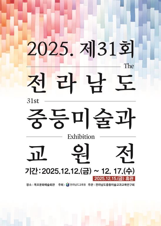 [메이저뉴스]전라남도교육청은 12일부터 17일까지 목포문화예술회관 1층 전시실에서 ‘2025. 제31회 전라남도중등미술과교원전’을 개최한다.