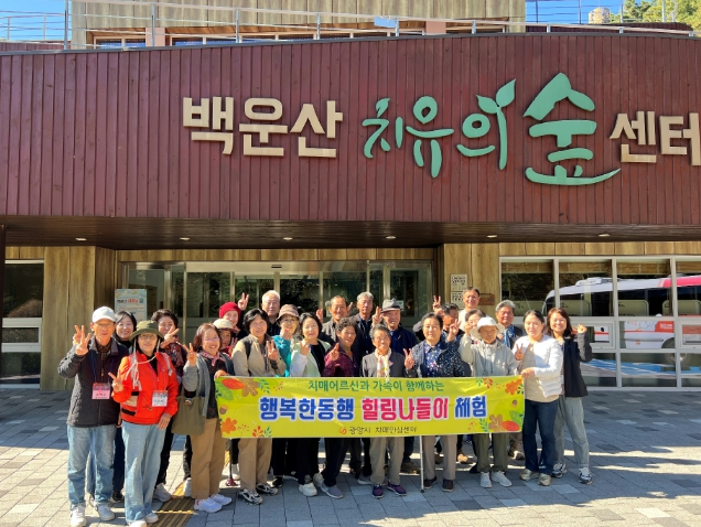 [메이저뉴스]광양시 치매안심센터는 지난 10월 29일 백운산 치유의 숲에서 치매 환자와 가족을 위한 ‘힐링 나들이’ 행사를 운영했다고 밝혔다.