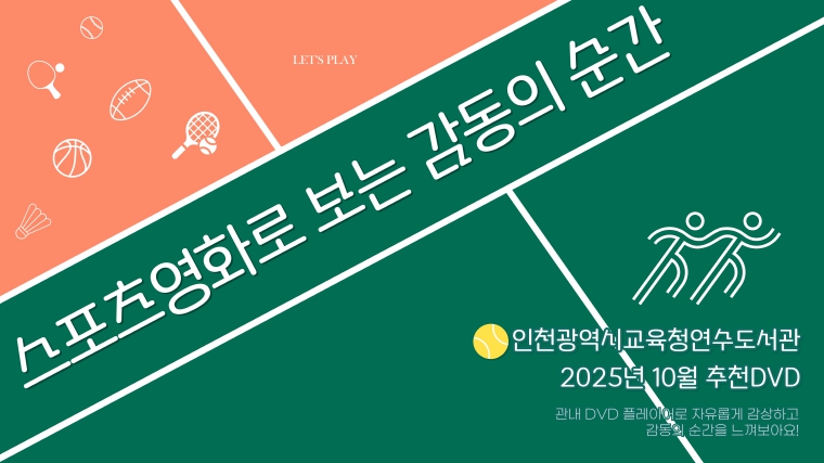 [메이저뉴스]인천광역시교육청연수도서관은 10월 한 달간 ‘스포츠로 보는 감동의 순간’을 주제로 추천 DVD 코너를 운영한다.