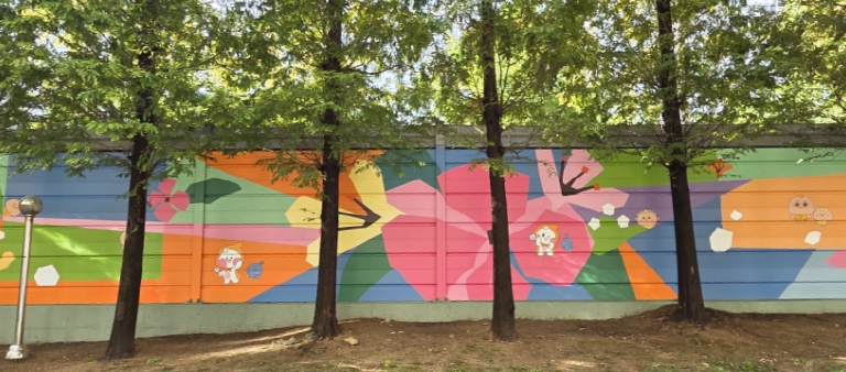 | ▲ 삼산정신건강복지센터, 삼산LH 1단지 초록아파트 방음벽에 ‘힐링길 벽화그리기’ 행사 진행 |