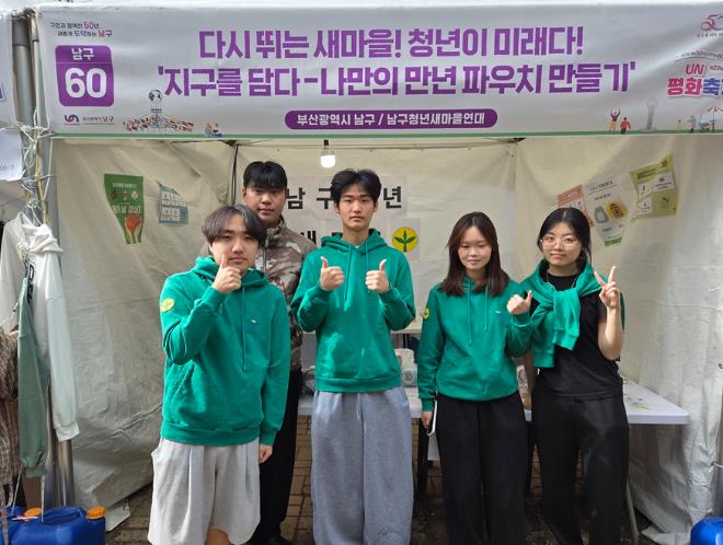 [메이저뉴스]부산 남구청년새마을연대는 지난 10월 25일부터 26일까지 이틀간 열린 유엔(UN)평화축제에서 환경 체험 부스 '지구를 담다-나만의 만년 파우치 만들기'를 운영했다고 밝혔다.