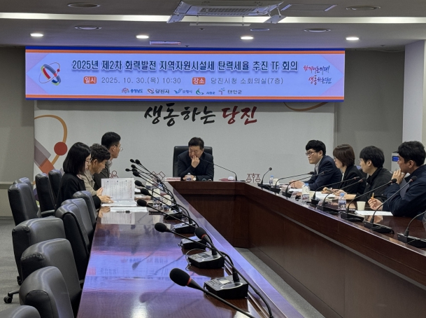 [메이저뉴스]당진시는 10월 30일 당진시청 소회의실에서 화력발전 지역자원시설세의 탄력세율 적용 확대를 위해 ‘화력발전 지역자원시설세 탄력세율 T/F회의’를 진행했다고 밝혔다.