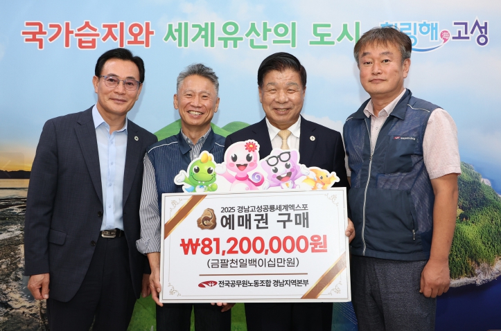 [메이저뉴스]경남 고성문화관광재단은 전국공무원노동조합 경남지역본부(본부장 강수동)가'2025경남고성공룡세계엑스포'의 성공적인 개최를 위해 8,120만 원 상당의 예매권 구매를 적극 지원했다고 밝혔다.