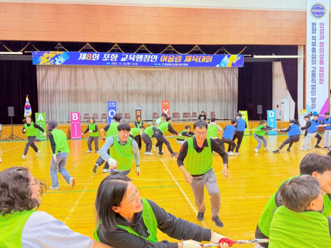 [메이저뉴스]경상북도포항교육지원청은 2025. 10. 23. 오후 2시 포항대학교 평보체육관에서 제8회 포항 교육행정인 어울림 체육대회를 개최했다.