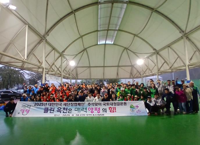 [메이저뉴스]양평군 옥천면은 26일 오전 6시 30분, 전진선 양평군수와 옥천면사무소 전 직원, 옥천면 각 기관·단체 회원 및 마을 주민 등 약 150여 명이 참여한 가운데 ‘2025년 대한민국 새단장 캠페인’ 추석맞이 국토대청결운동을 실시했다고 밝혔다.