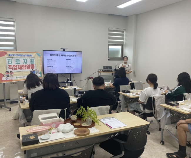 이번 프로그램은 전통 디저트 전문가에 듣는 직업적 역할과 전망, 직접 전통 디저트(화과자)를 만들며 전통 디저트의 매력과 창의적 진로 가능성을 탐색하는 내용으로 진행됐다.