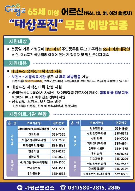 | ▲ 가평군, 65세 이상 어르신 대상포진 무료 접종 |