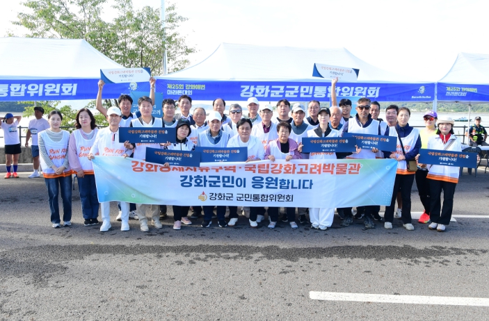 [메이저뉴스]강화군 군민통합위원회는 지난 21일 오전, 내가면 함상공원에서 열린 인천일보 주최 해변마라톤 대회 현장에서 ‘강화경제자유구역 지정’과 ‘국립강화고려박물관 건립’을 주제로 한 홍보 캠페인을 성황리에 마쳤다.